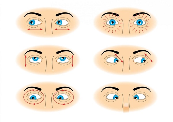 Nhắm mắt xoay nhãn cầu theo chiều kim đồng hồ sau đó xoay ngược chiều kim đồng hồ, mỗi chiều 10 lần. Thực hiện bài tập thường xuyên giúp tăng cường lưu thông máu và giảm căng thẳng.