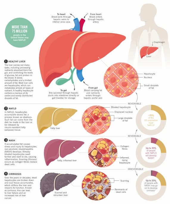 Nói ngắn: mỡ nhiều → tế bào gan bị stress → viêm → có thể dẫn đến sẹo.