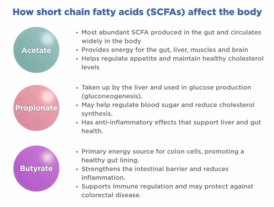 Axit béo chuỗi ngắn: chức năng của axetat, propionat và butyrat